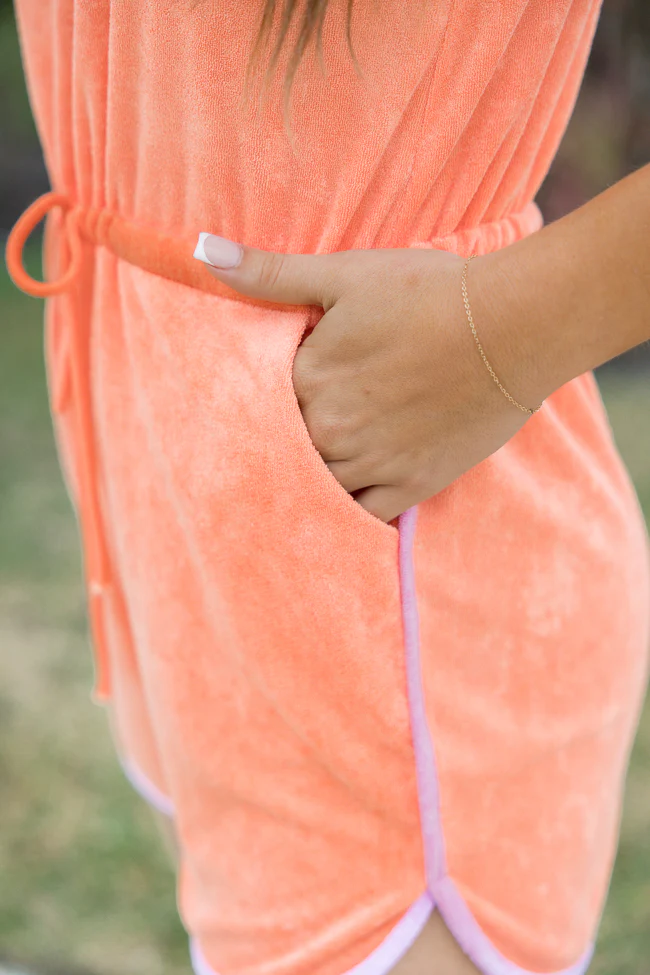 Rylee Orange And Pink Terrycloth Romper